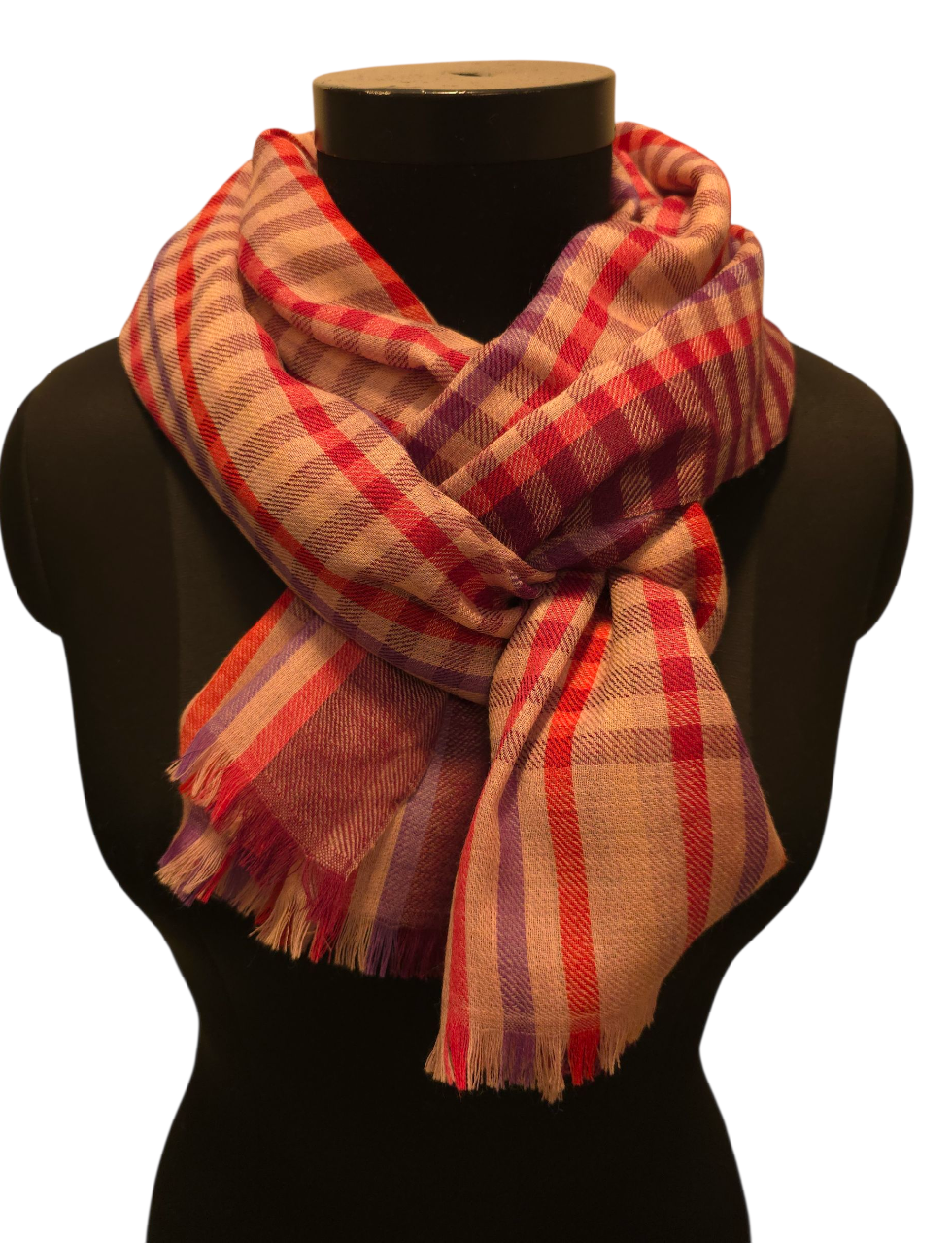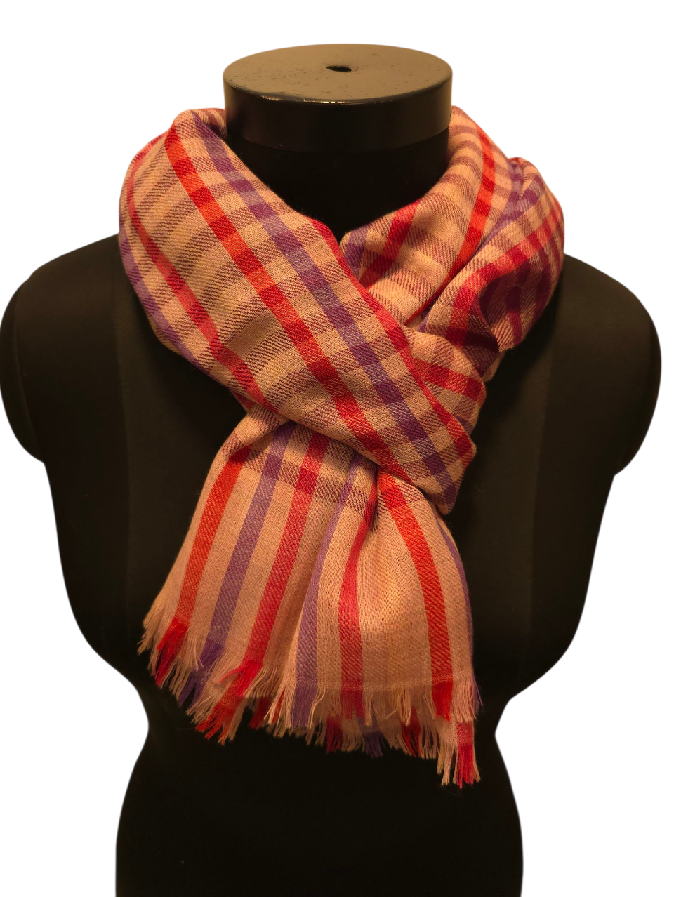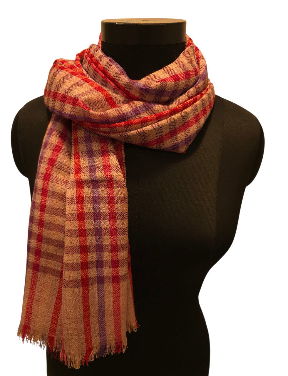 Skjerfet er ca 70x180 cm stort. Produsert i Delhi, India.