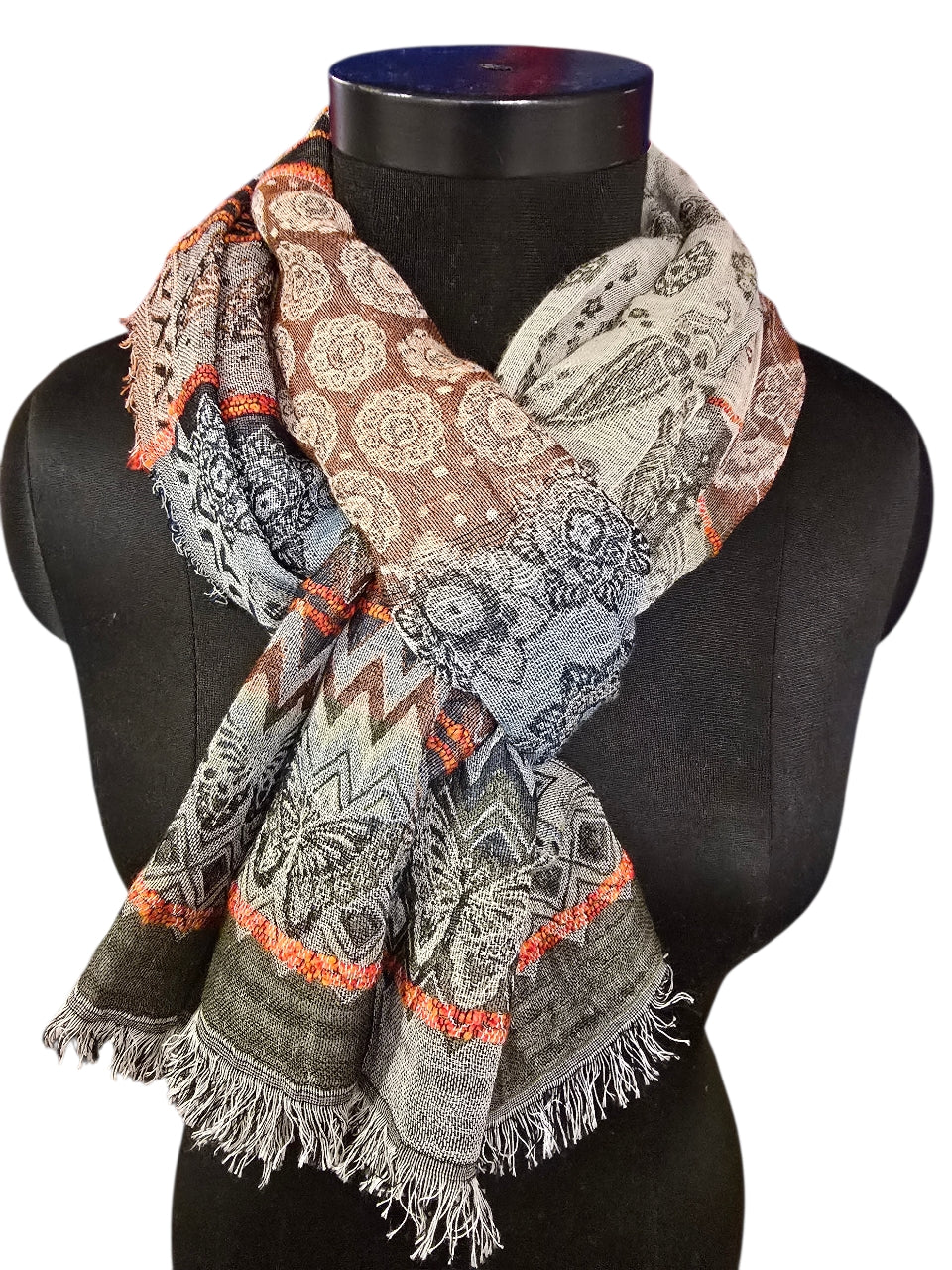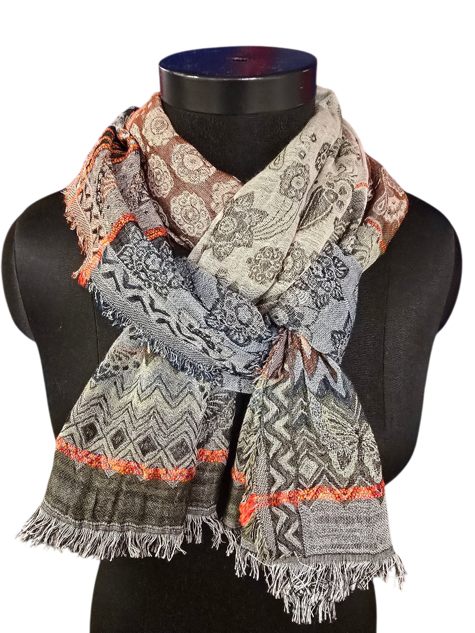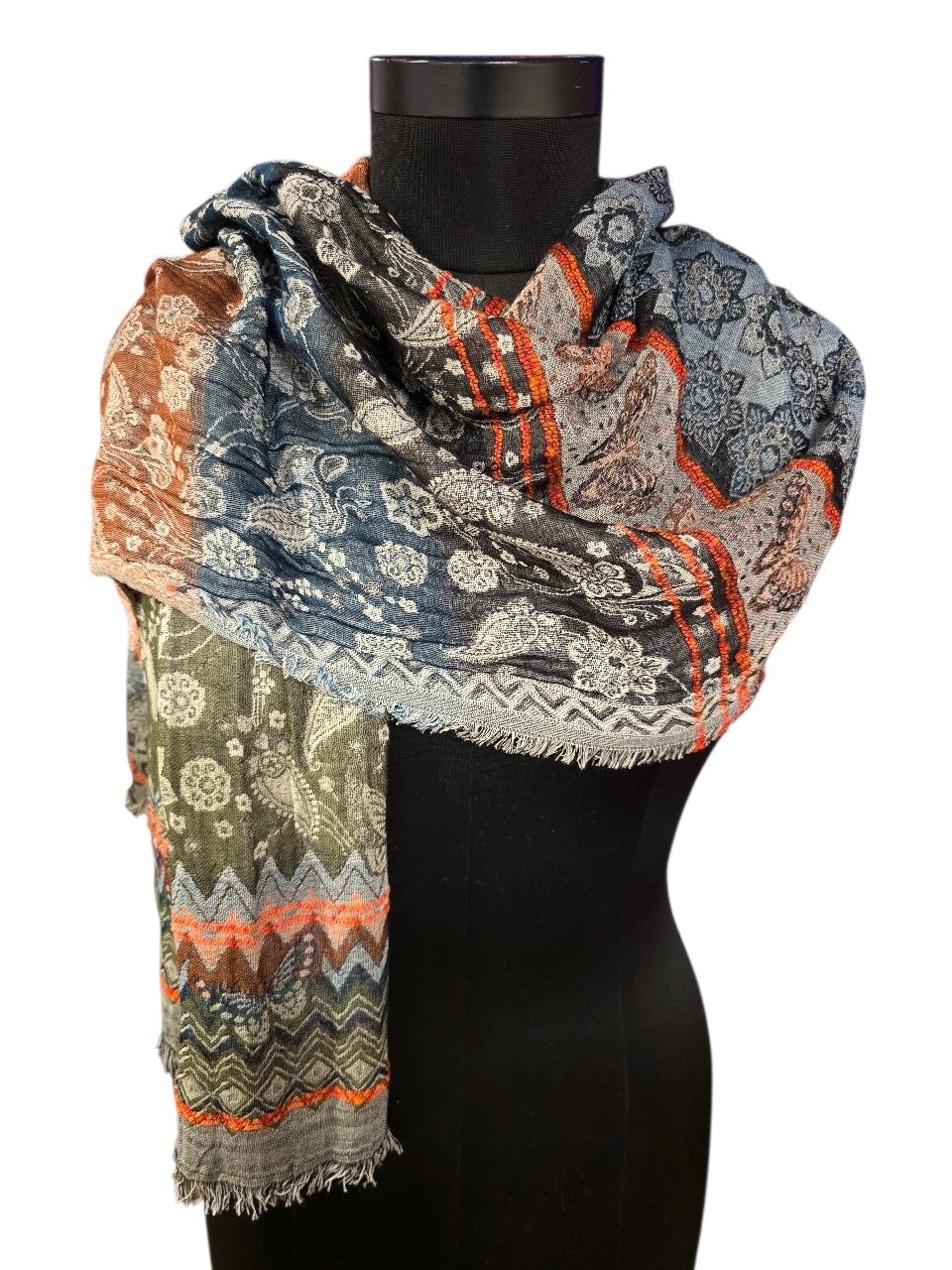 Flerfarget og mønstret skjerf i bomull og silke (14)
