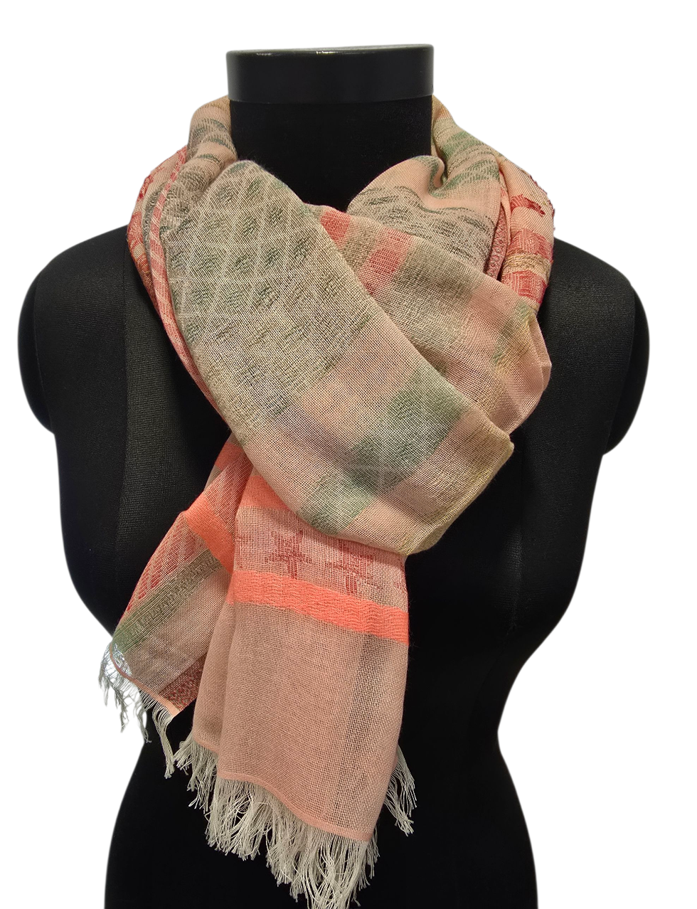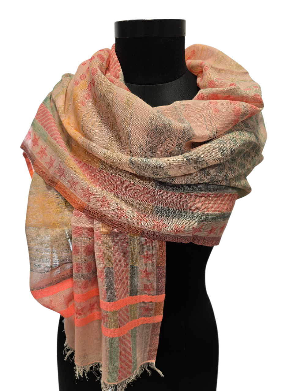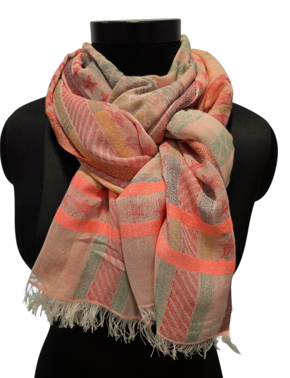 Et lett og behagelig inneskjerf i lette friske farger. Dette er en vareprøve og selges til en skikkelig god pris.