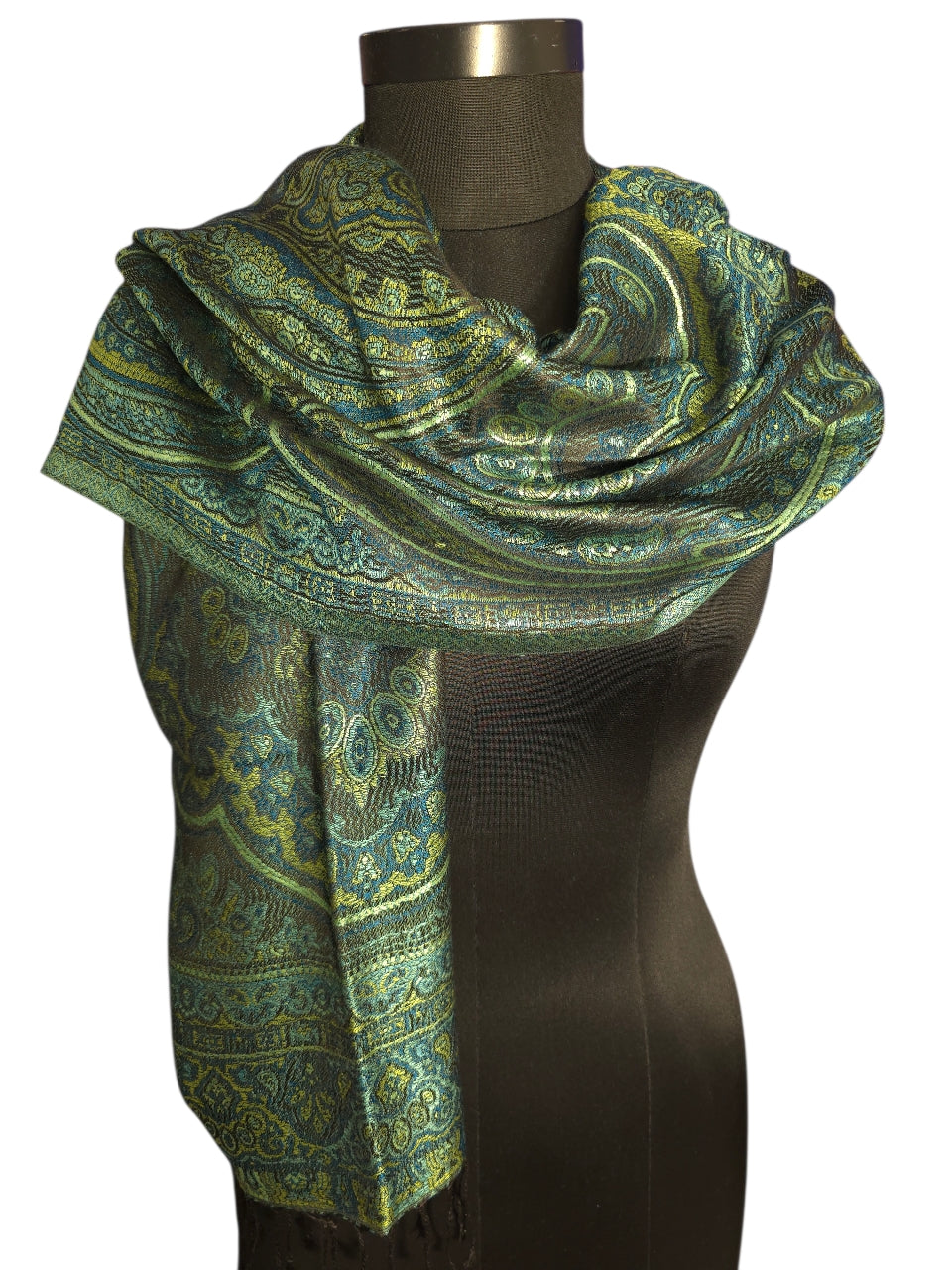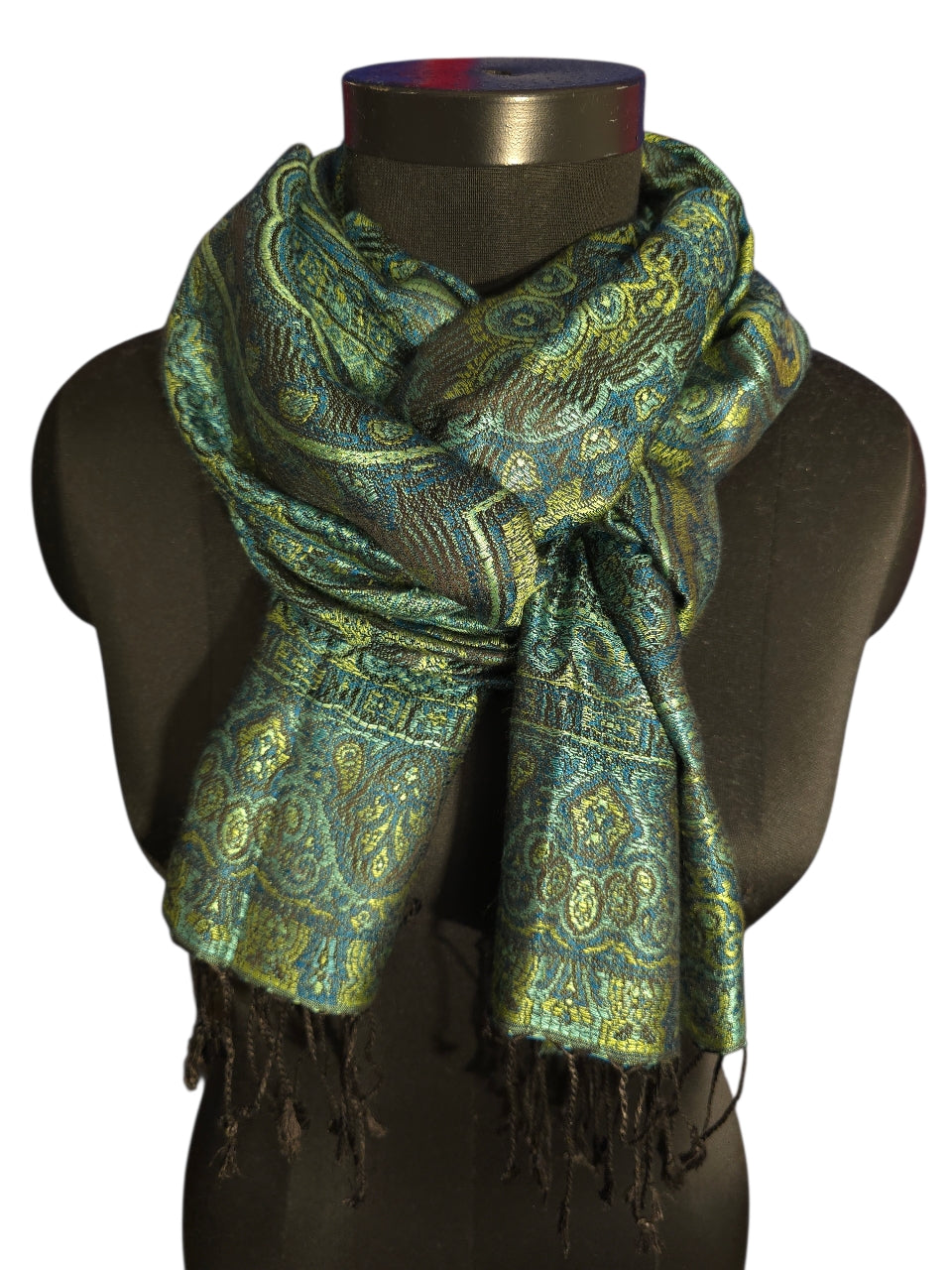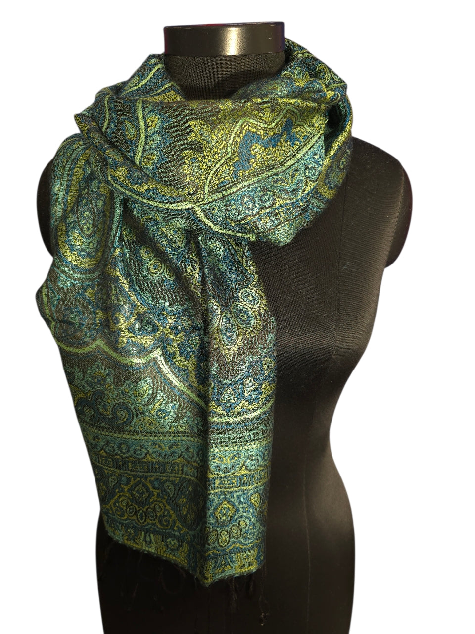 Et lekkert og luksuriøst skjerf i vakre farger med et utsøkt paisley mønster,