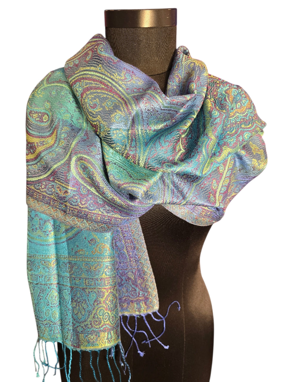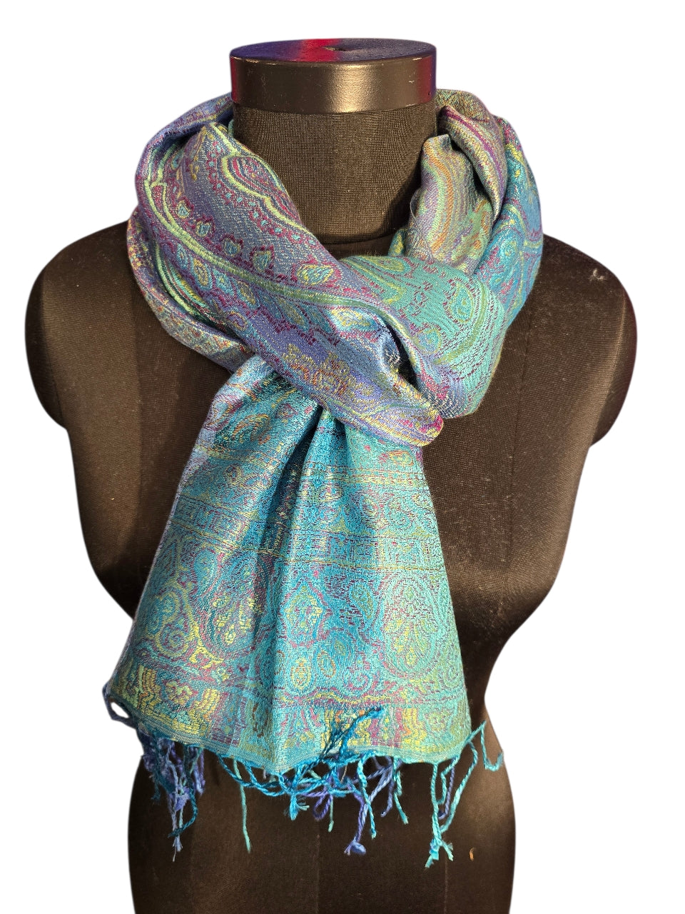 Jaquardvevet silkeskjerf i turkise og blå farger (44)