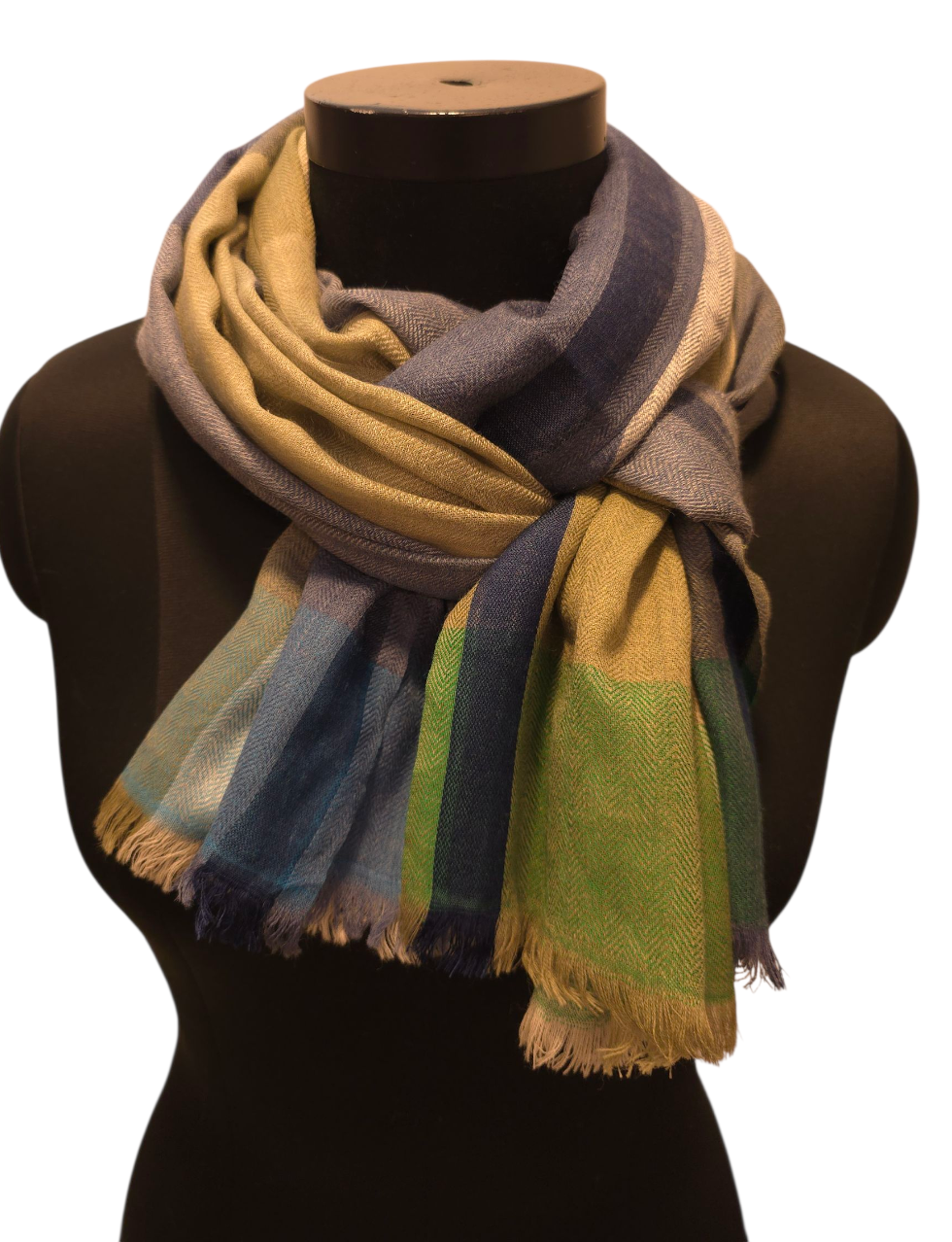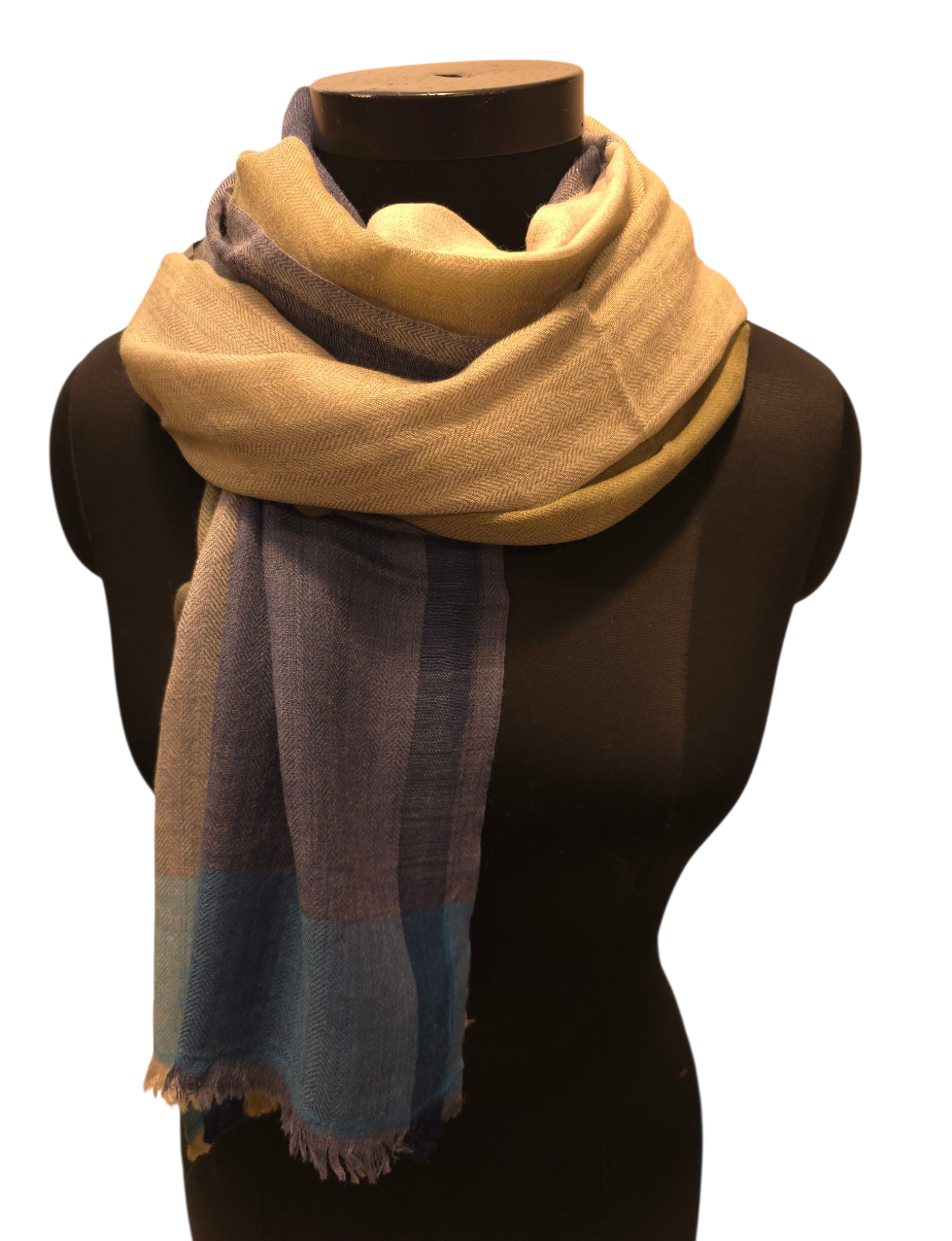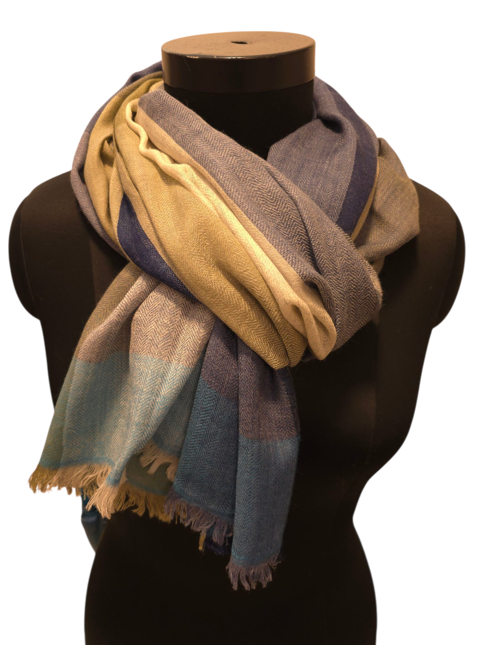 Sjalet er ca 70x180 cm stort. Produsert i Delhi, India.