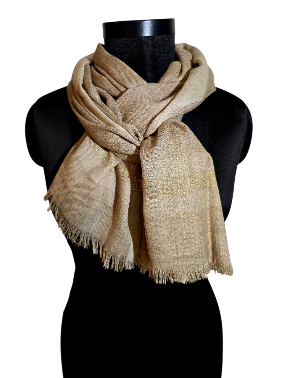 Beige og gråaktig skjerf i ren ull (83)