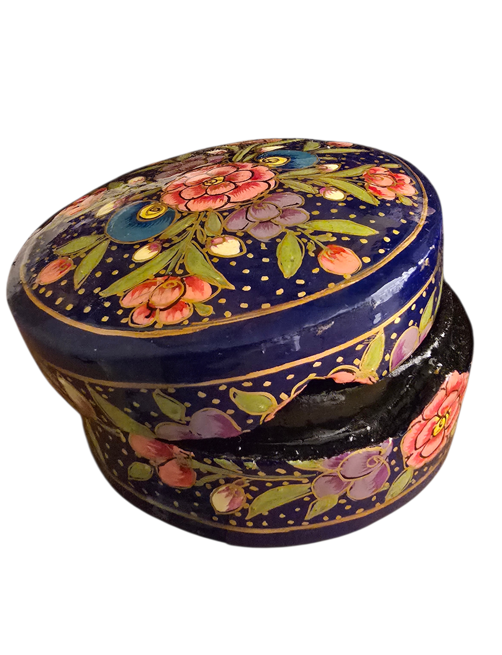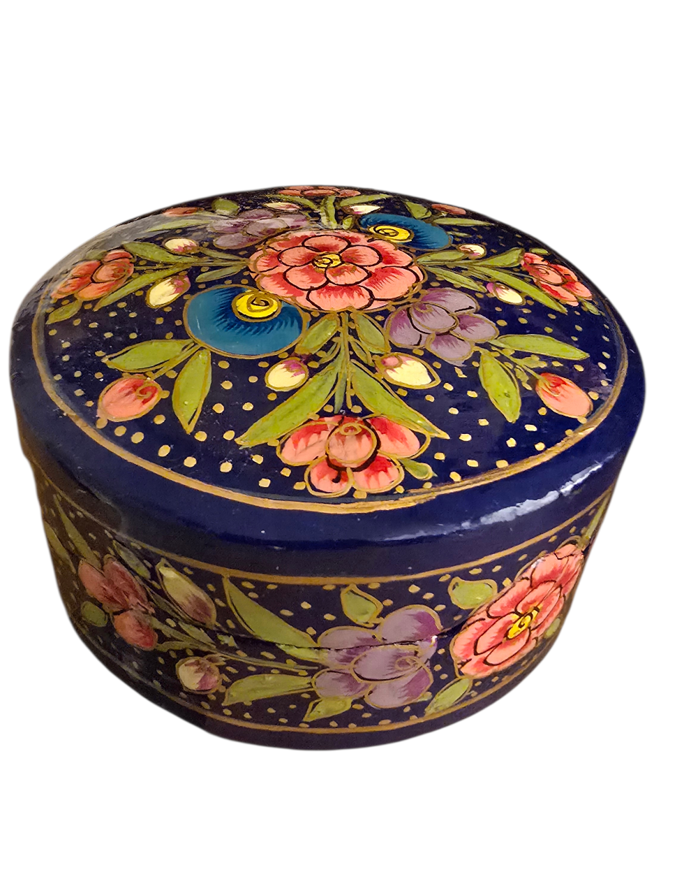 Denne boksen er håndlaget i papp-maché. Malt og lakkert for hånd. Den perfekte gaven å gi arvesmykket i. Eller venninne gave?