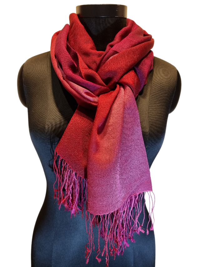 Cashmere og mulberrysilke skjerf i rosa, lilla og mørkerøde farger (62)