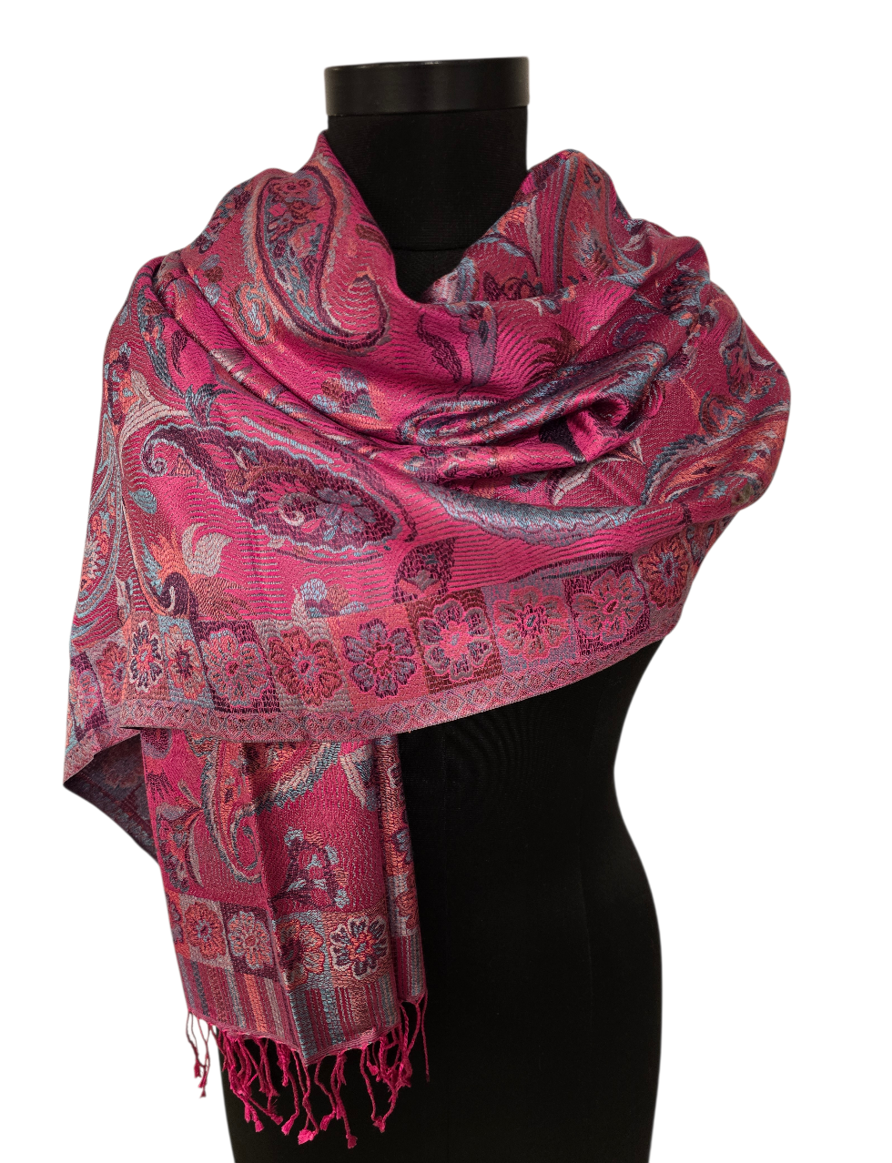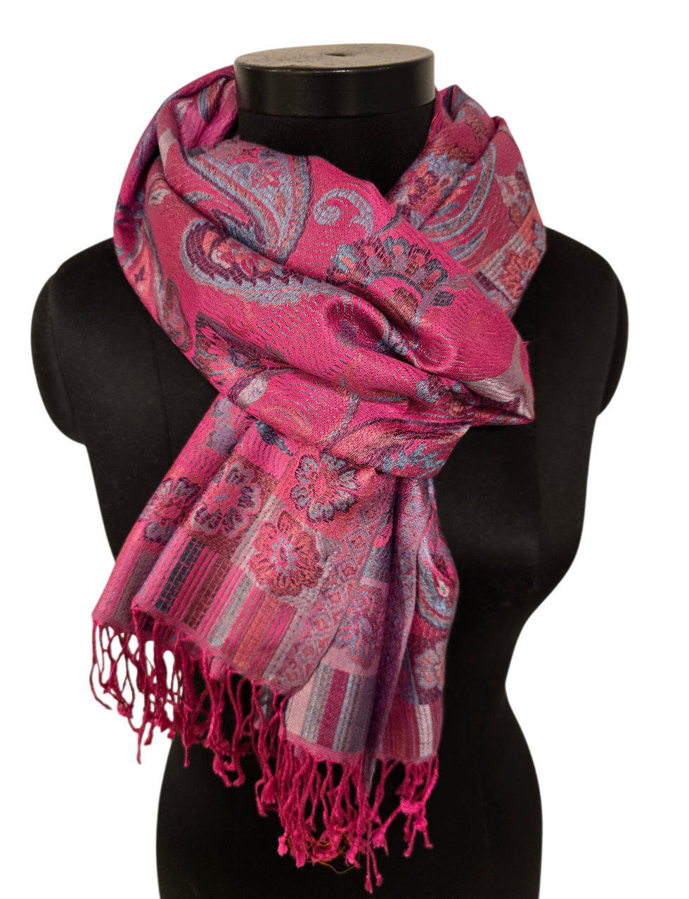 Lekkert og elegant rosa silkeskjerf. Sjalet er jaquardvevet så det får en flott bakside.