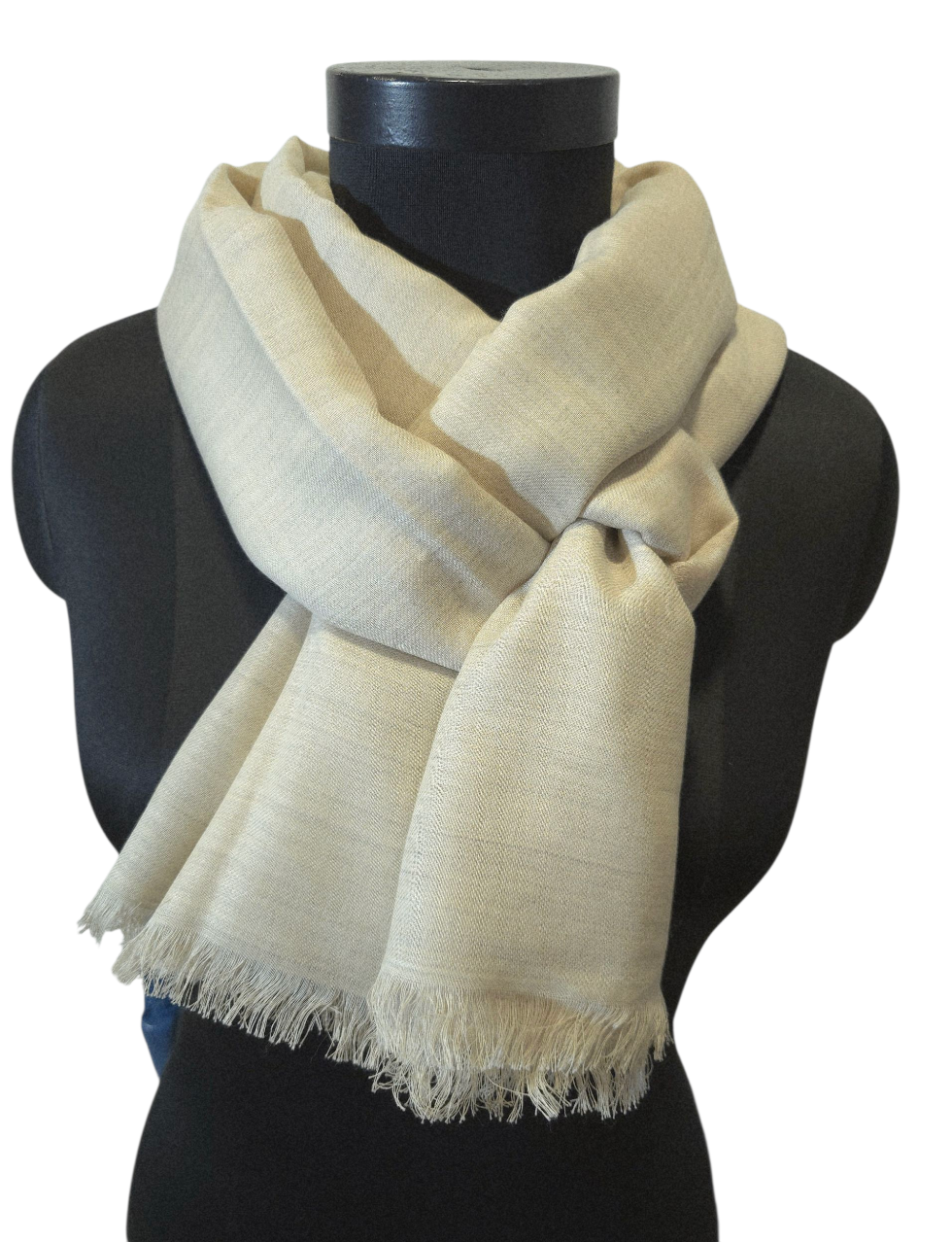 Supermykt, lett og behagelig skjerf i en farge som ligger et sted mellom offwhite og lys lys beige.