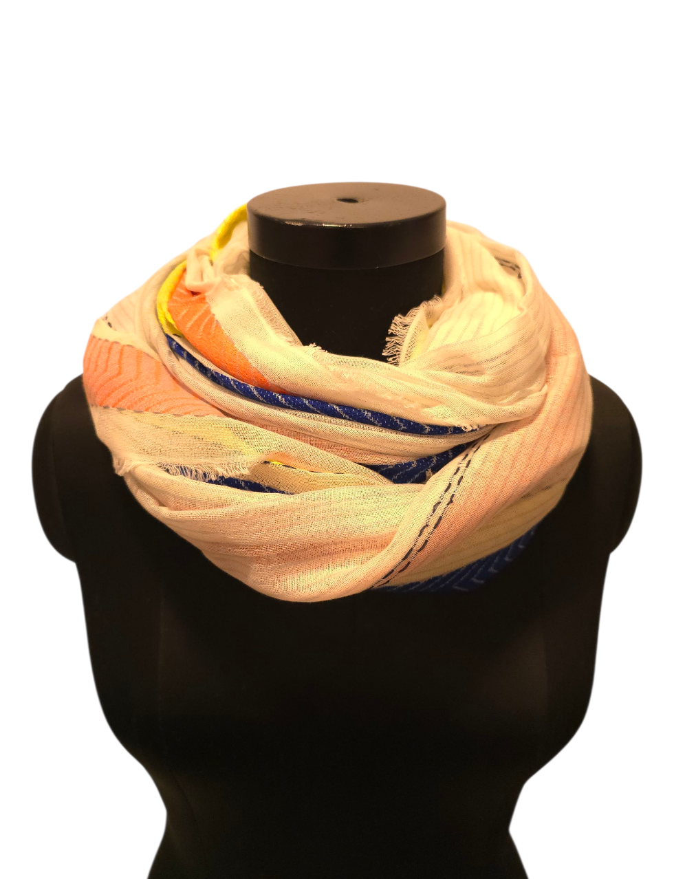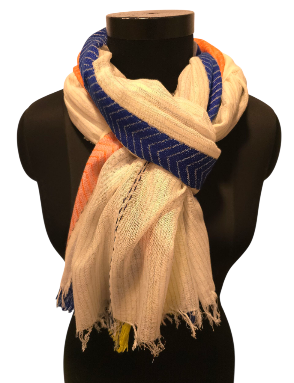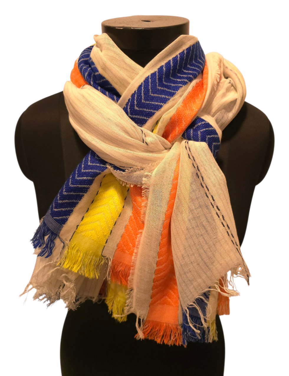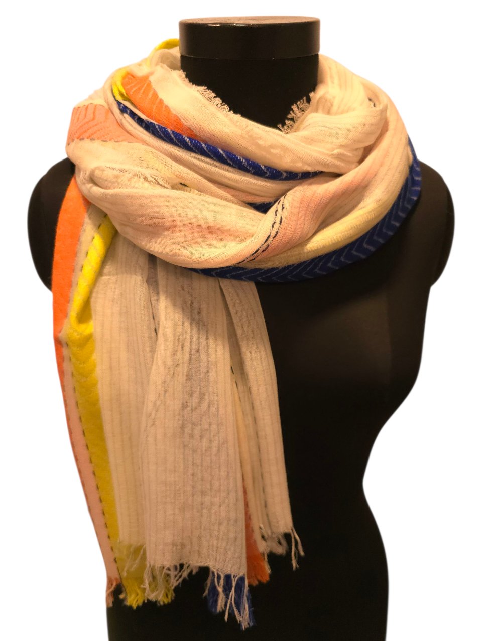 Mykt og godt bomullssjal med brede og broderte striper (130)