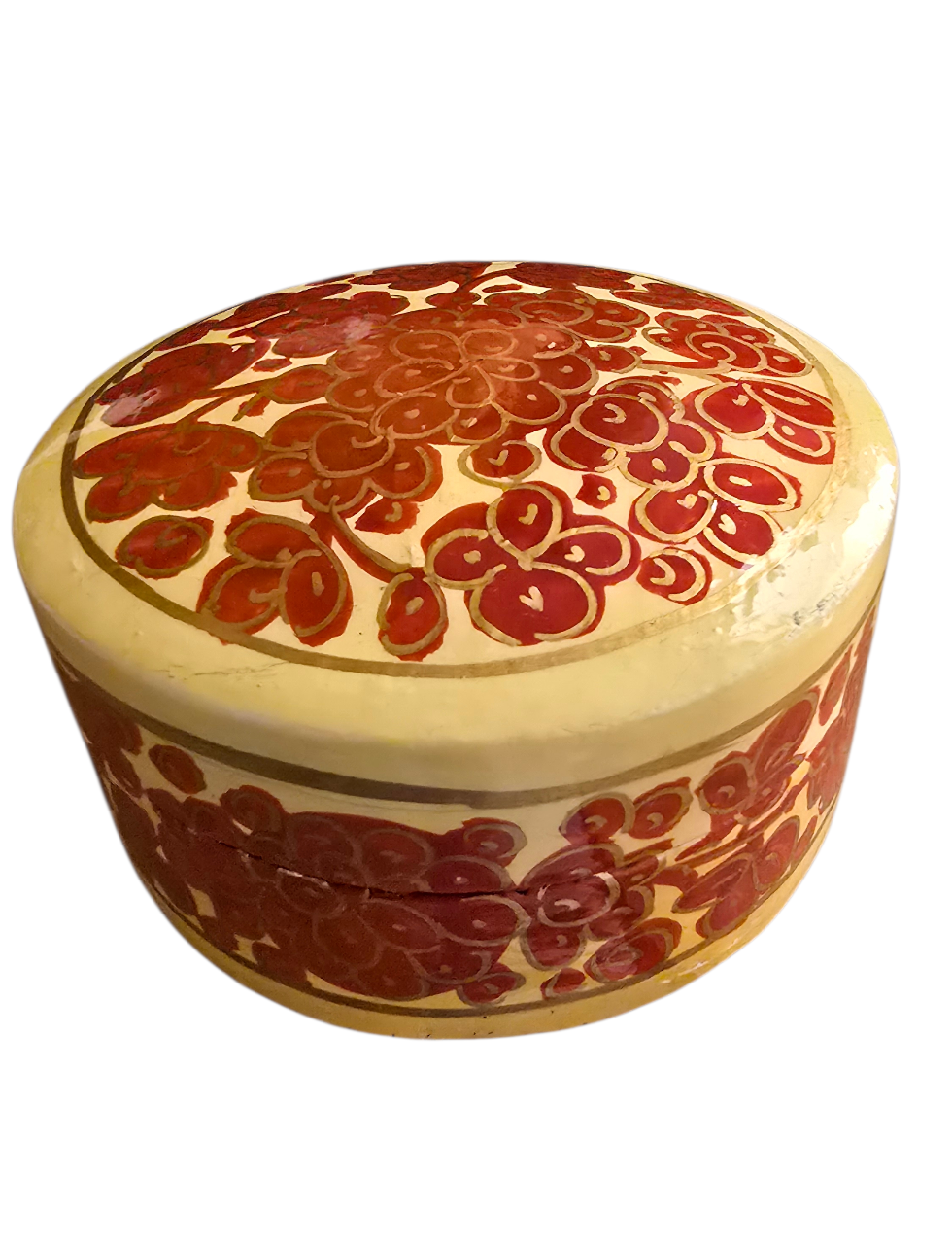 Rund smørgul boks med røde blomster (17)