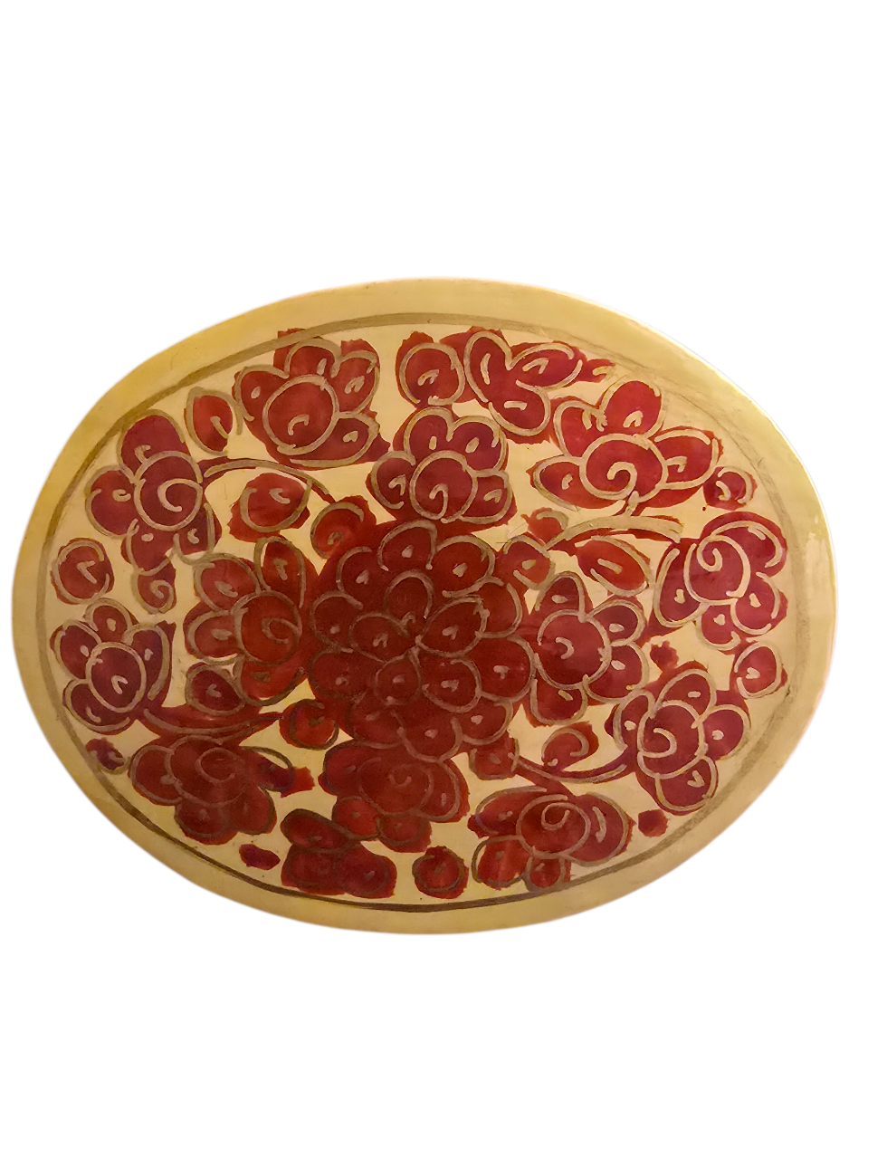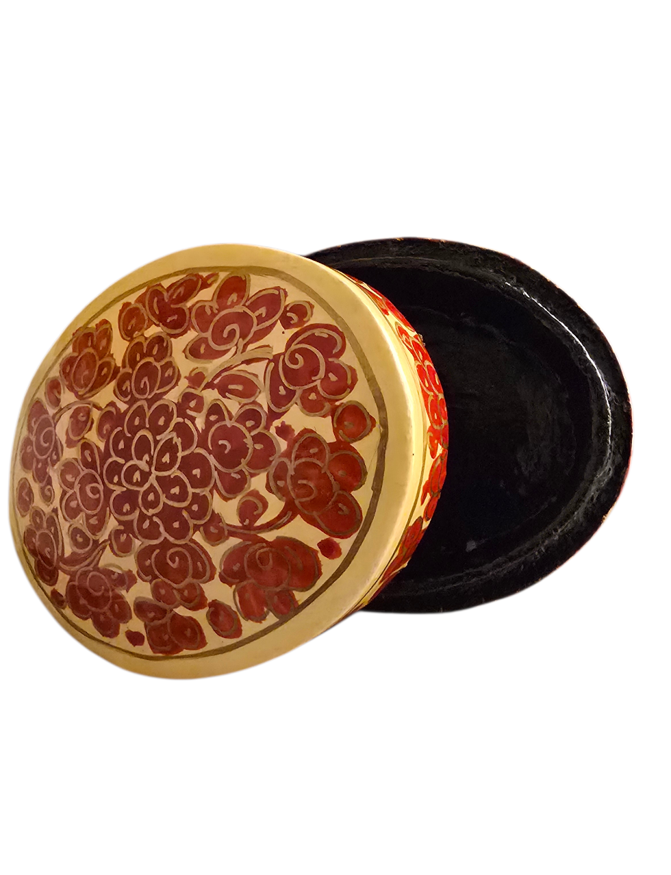 Et flott lite skrin eller boks om du vil. Denne gangen i en oval form. Den er håndlaget i papp-maché. Malt og lakkert for hånd. Den perfekte gaven å gi arvesmykket i. Eller venninne gave?