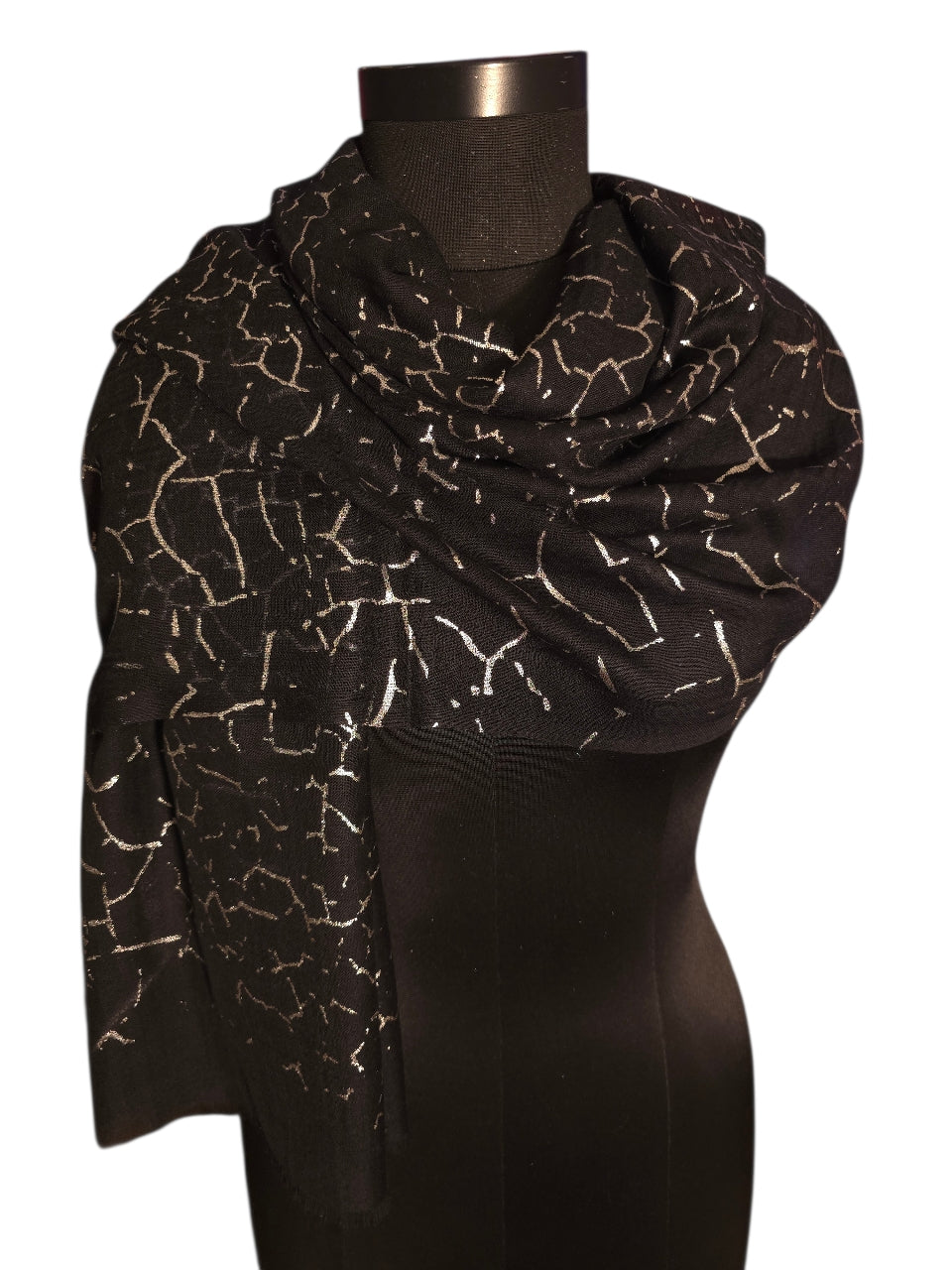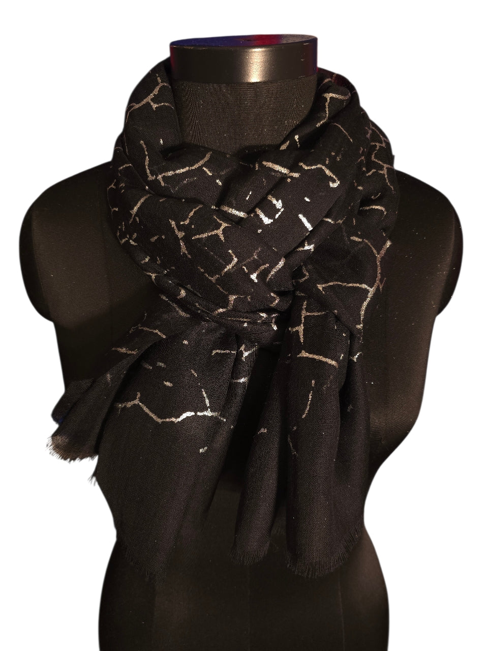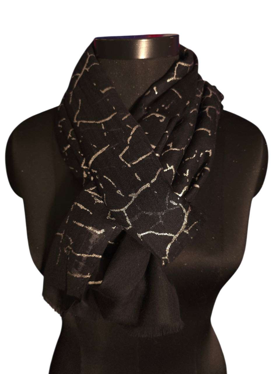 Sort skjerf i merino og silke med "sølv" mønster (73)