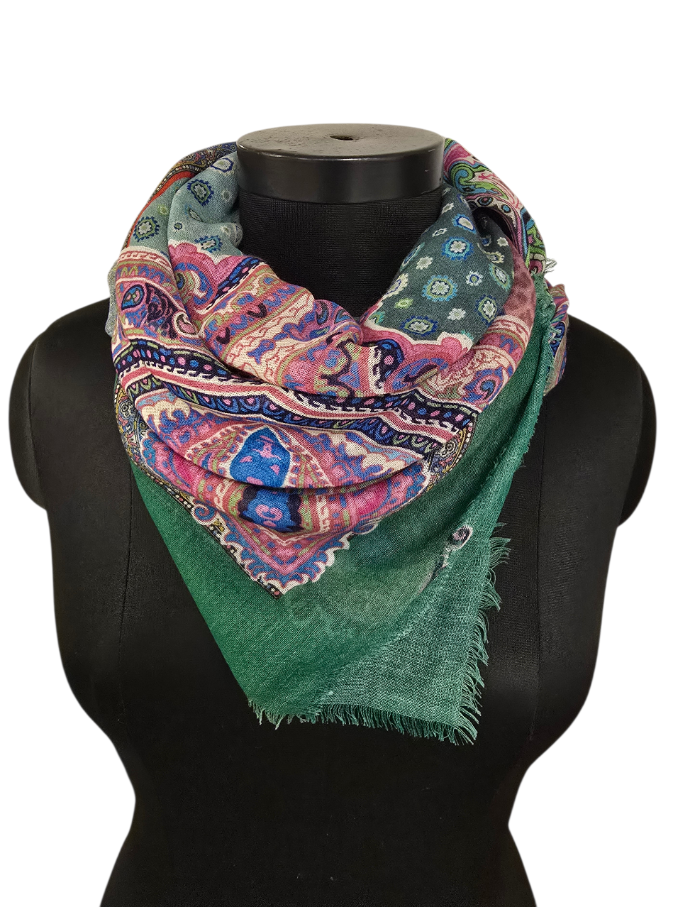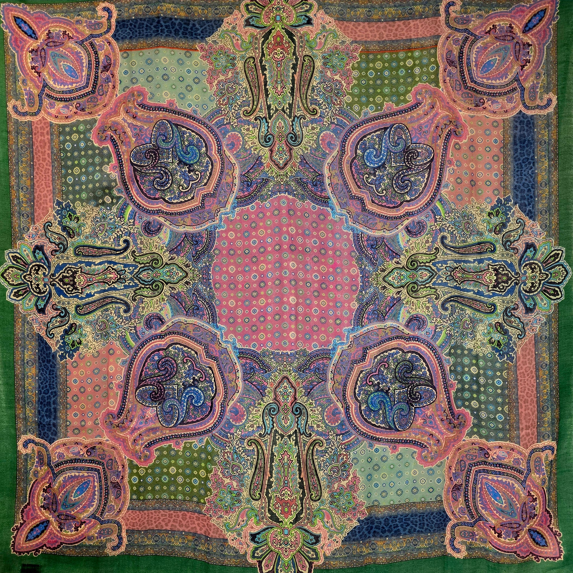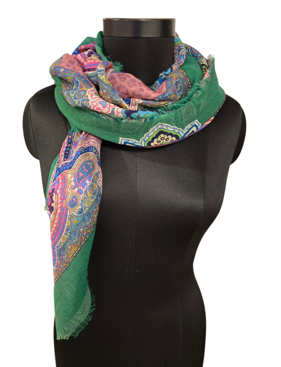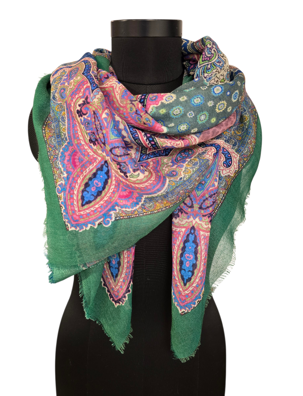 Et supermykt og tynt sjal med en flott grønn ramme.