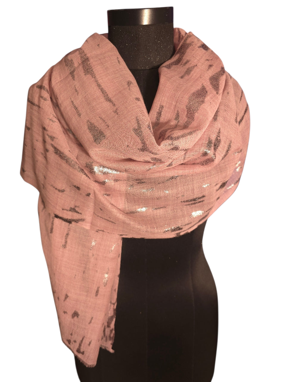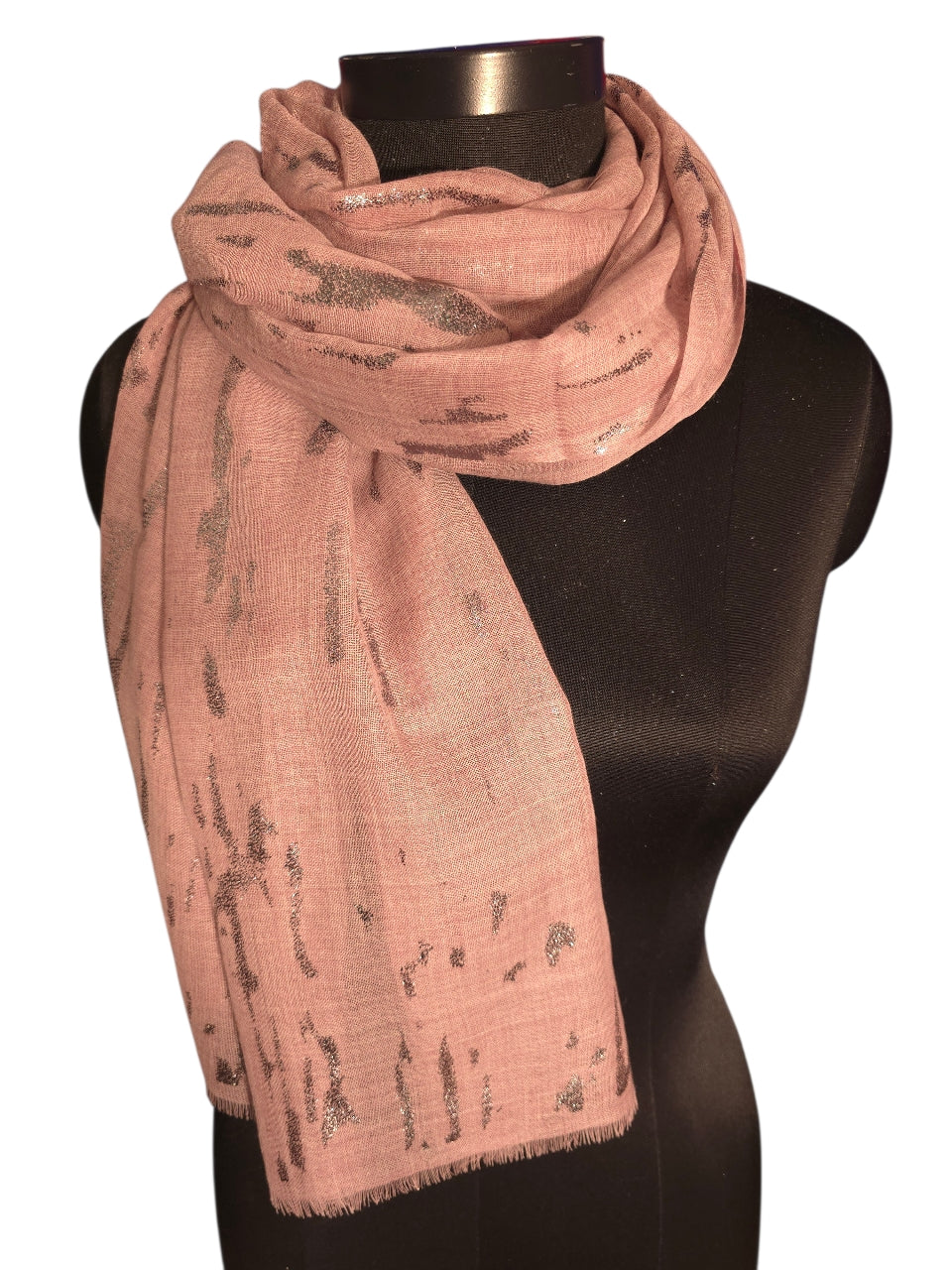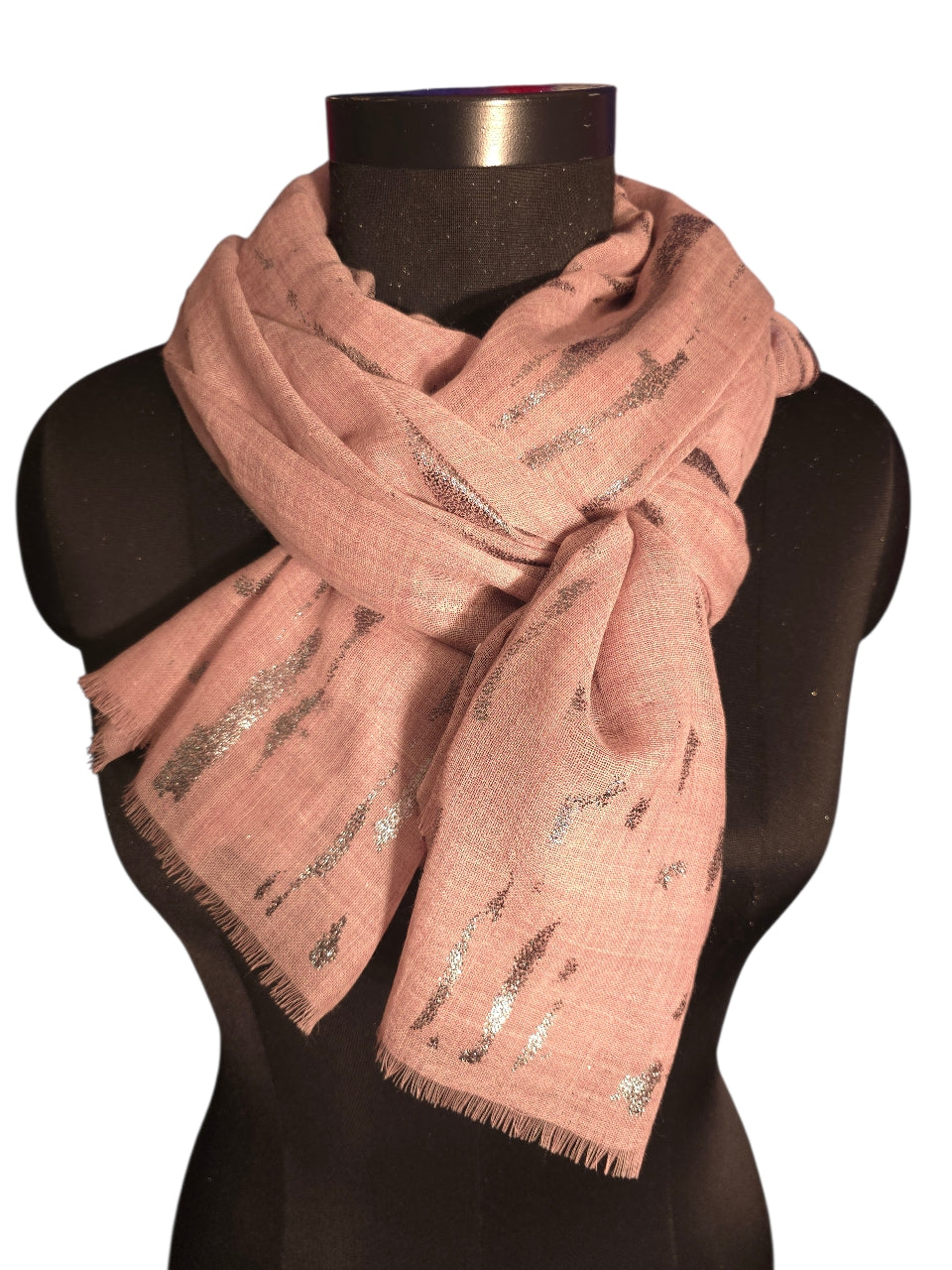 Støv-rosa skjerf i merino og silke med "sølv" mønster (71)