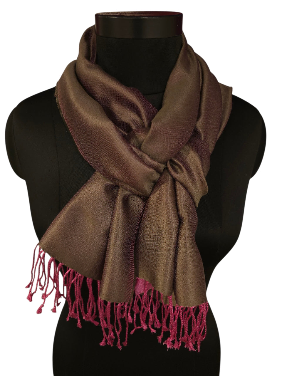 Tosidig sjokoladebrunt og lys rosa silkeskjerf (50)