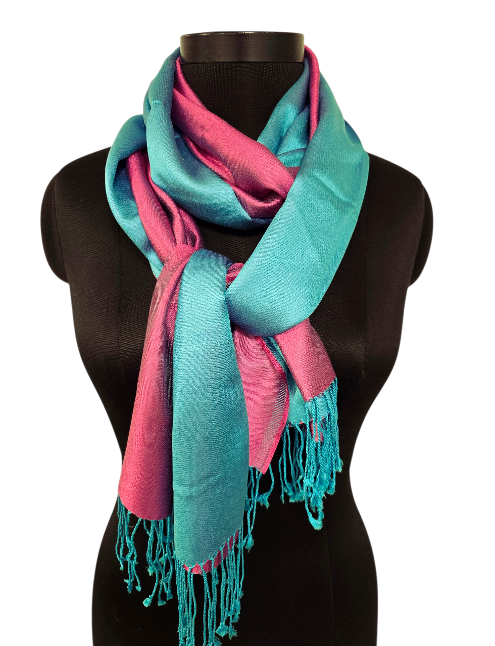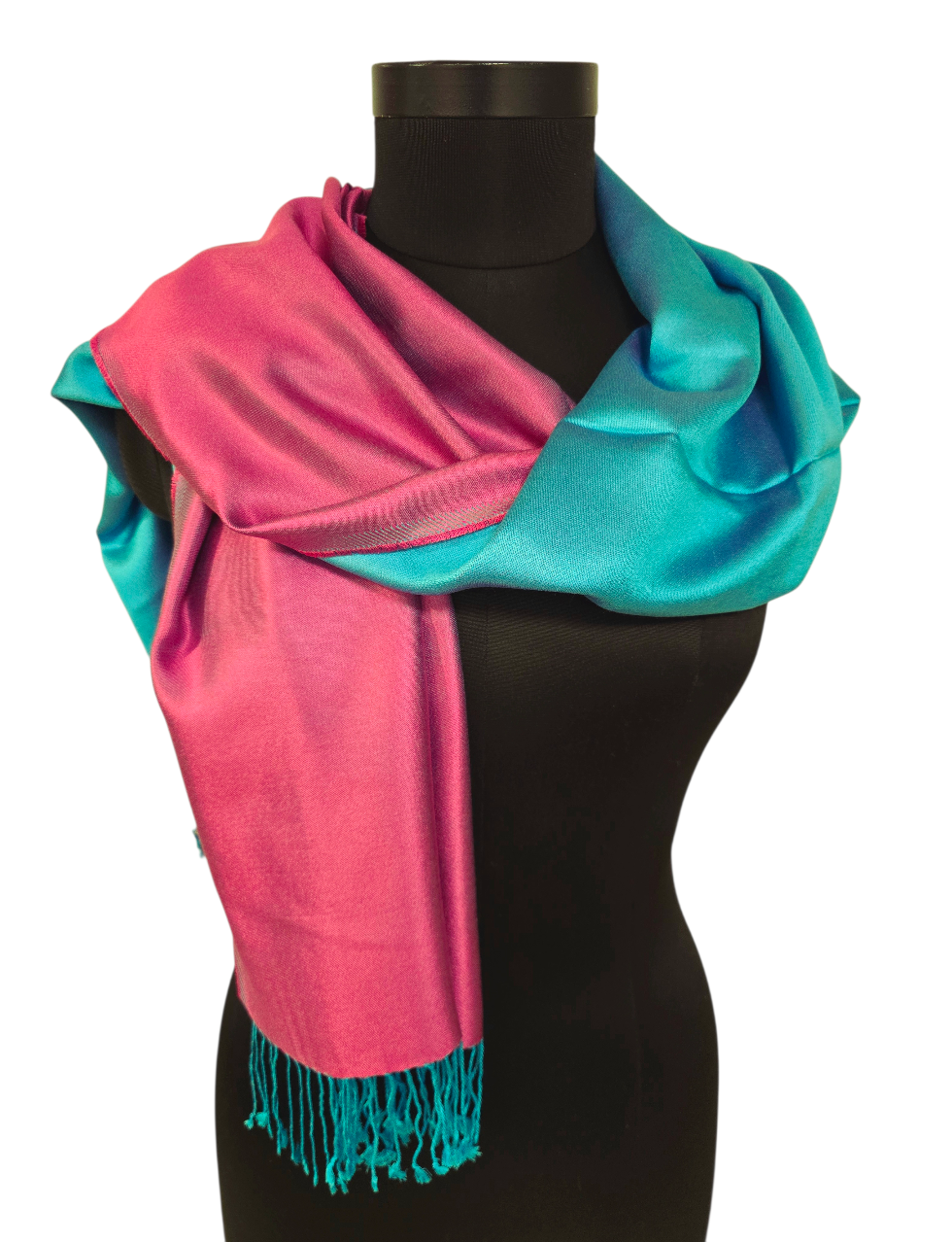 Tosidig turkis og rosa silkeskjerf (31)